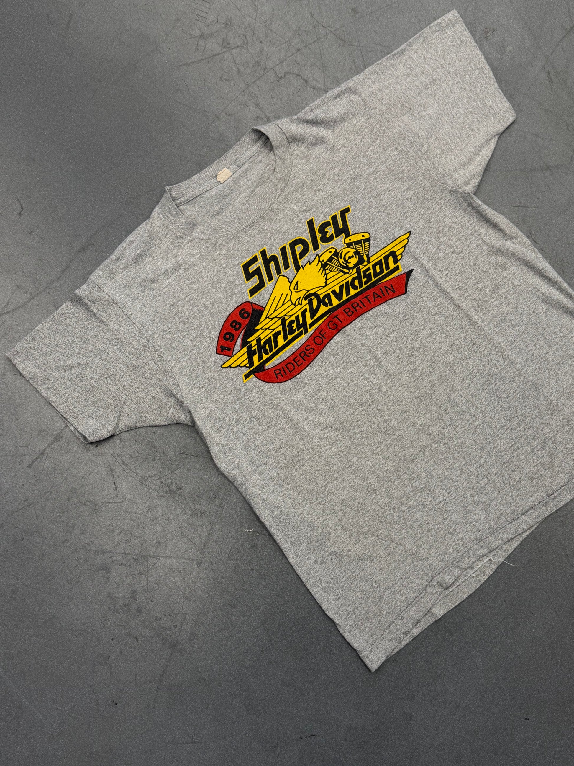 1986 HARLEY-DAVIDSON SHIPLEY RIDERS OF GREAT BRITAIN TEE (SCREEN STARS TAG)