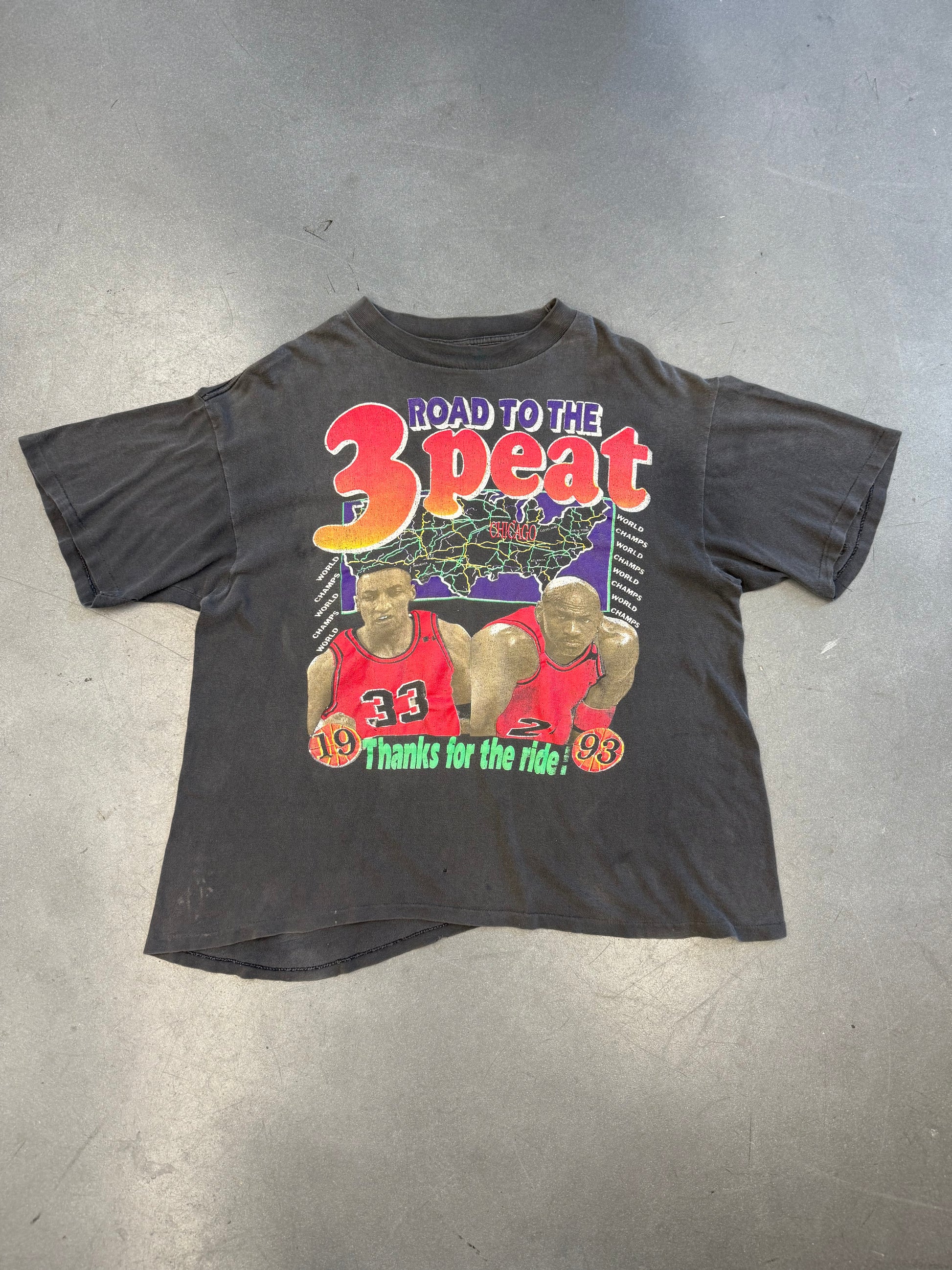 1993 ROAD TO THE 3 PEAT CHICAGO BULLS BOOTLEG RAP STYLE TEE (DIAMOND STAR TAG)