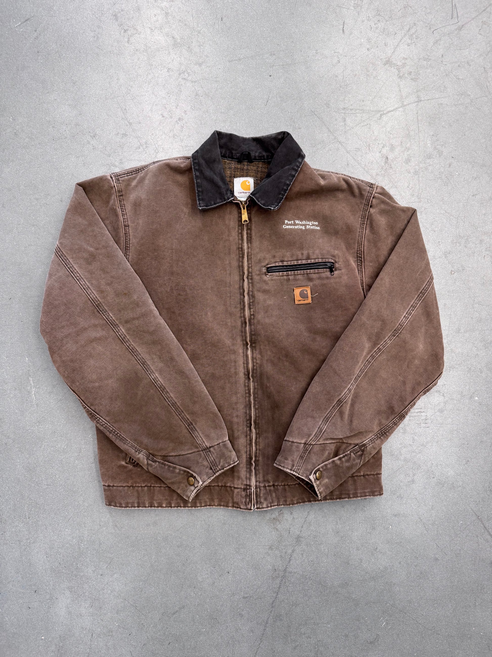 90'S CARHARTT FLANNEL-LINED EMBROIDERED BACK CANVAS WORK JACKET - BROWN (J97CHT) (L)
