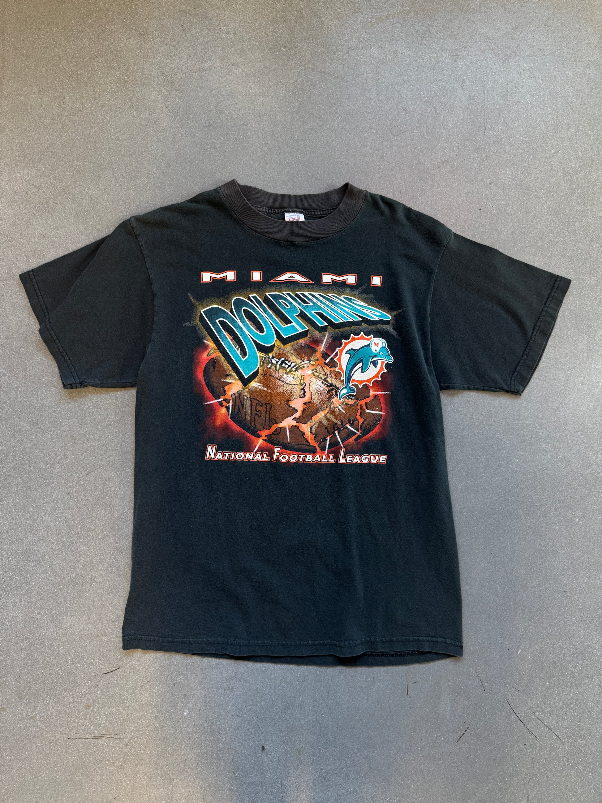 90'S MIAMI DOLPHINS EXPLODING FOOTBALL TEE (LOGO 7 TAG)