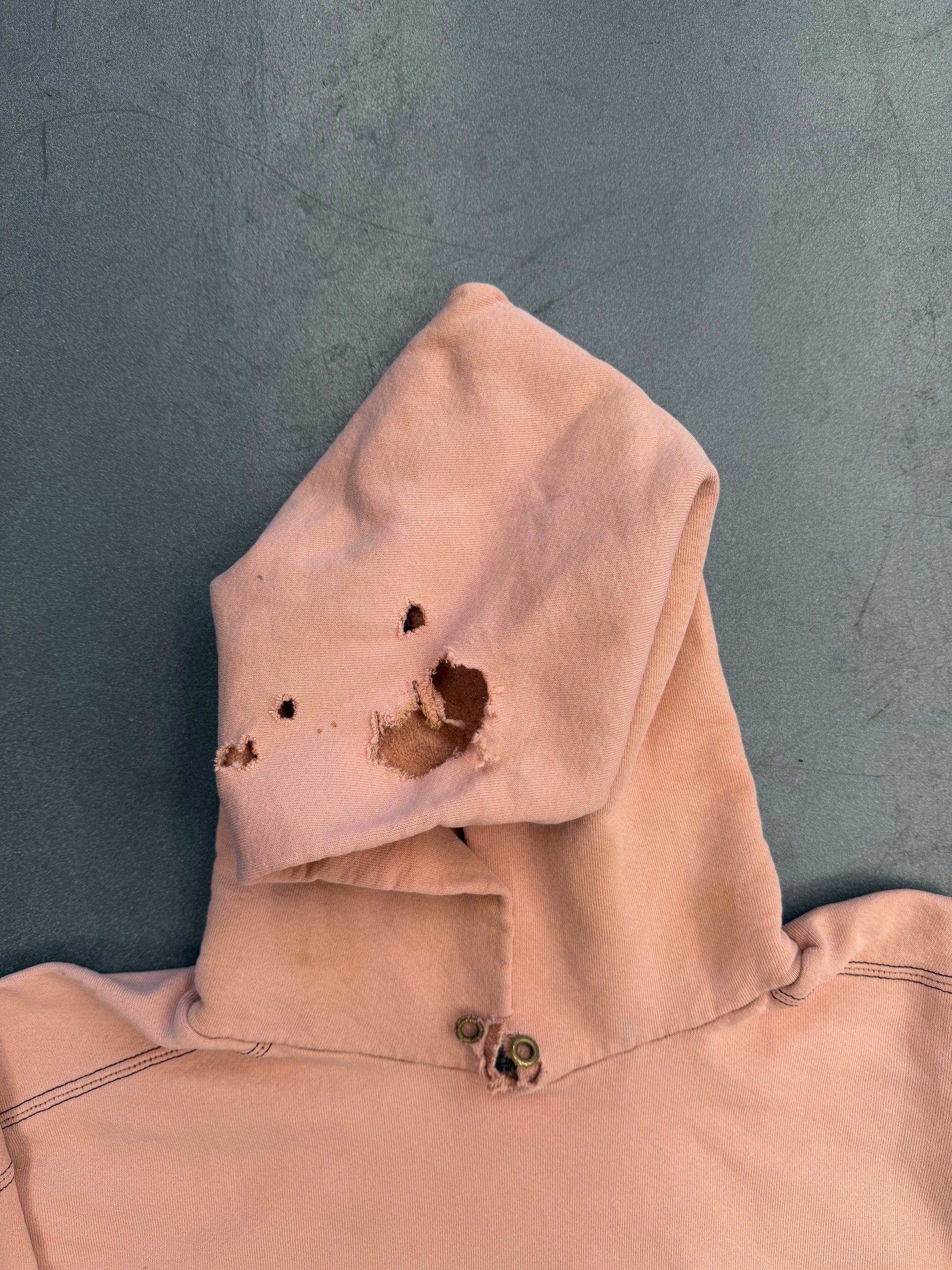 90S NIKE SIDE SWOOSH PULLOVER HOODIE DISTRESSED AND SAFETY-PINNED (NIKE RED SWOOSH TAG)