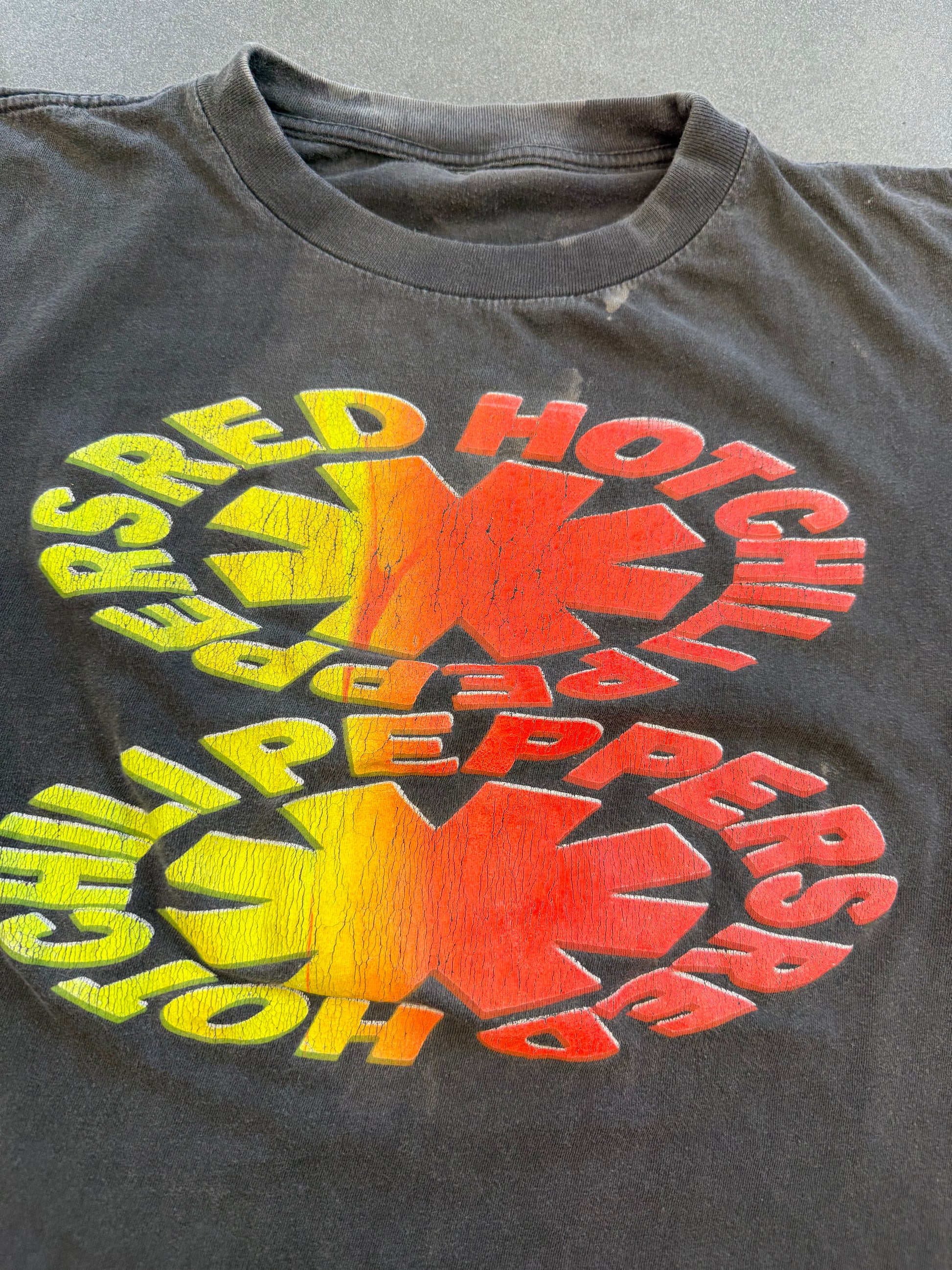 90'S RED HOT CHILI PEPPERS BOOTLEG YELLOW/RED DOUBLE LOGO TEE (PULLED TAG)