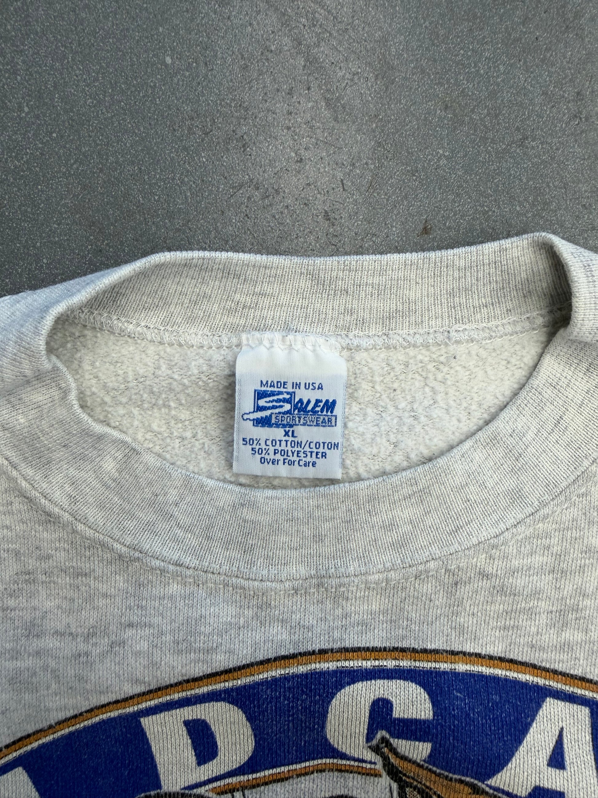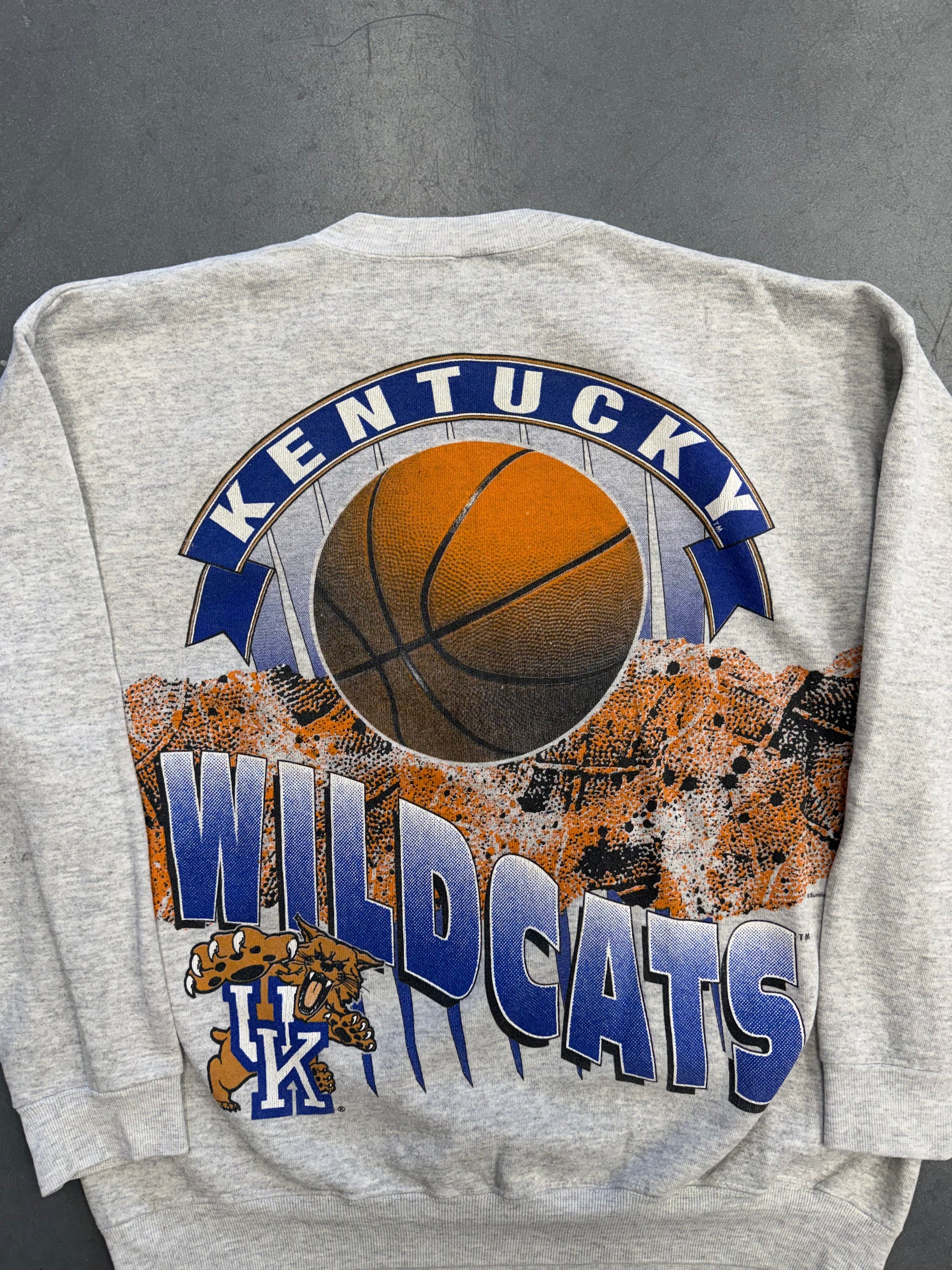 90S UNIVERSITY OF KENTUCKY WILDCATS GO BIG BLUE! WRAPAROUND CREWNECK SWEATER (SALEM SPORTSWEAR TAG)