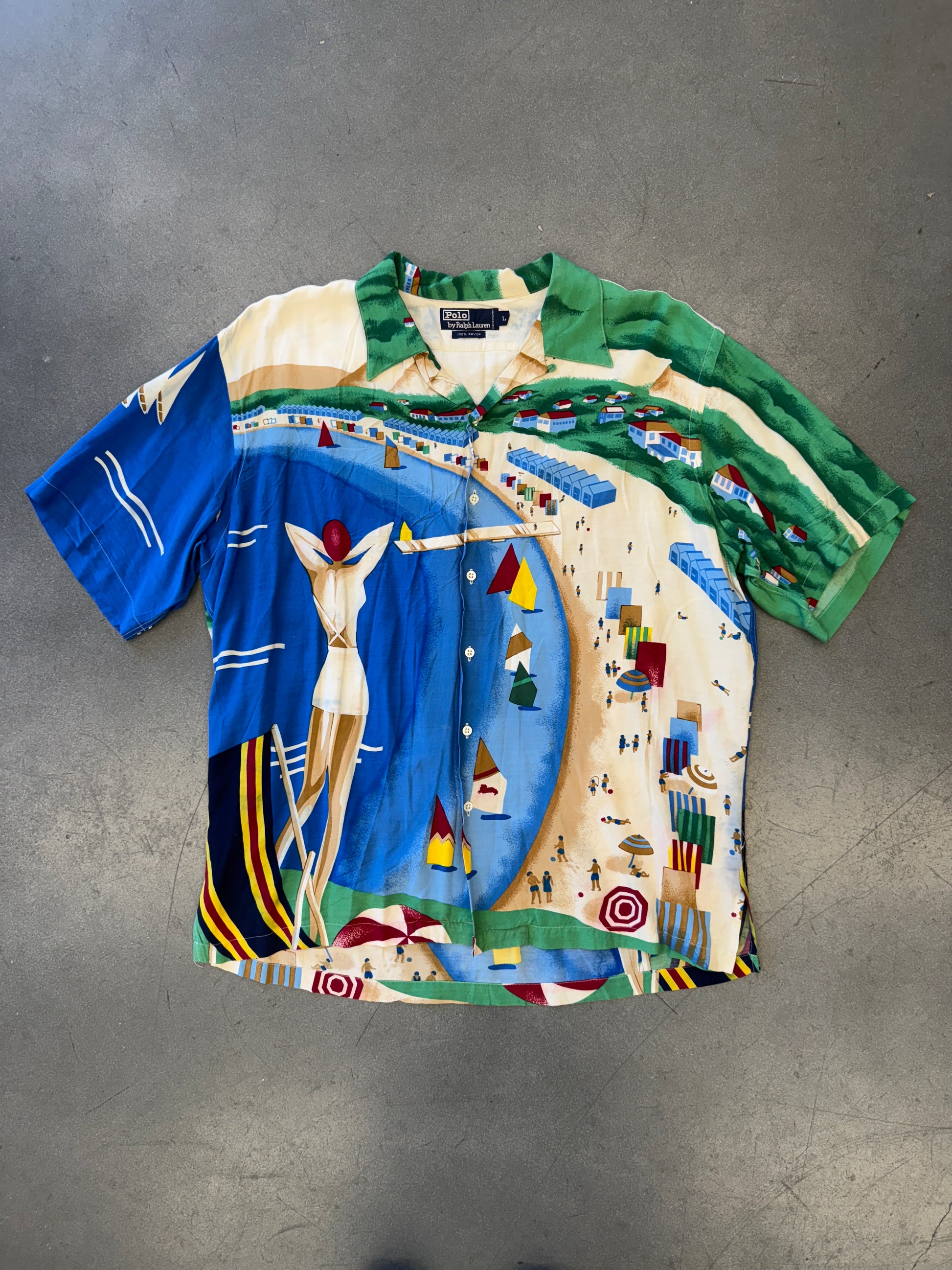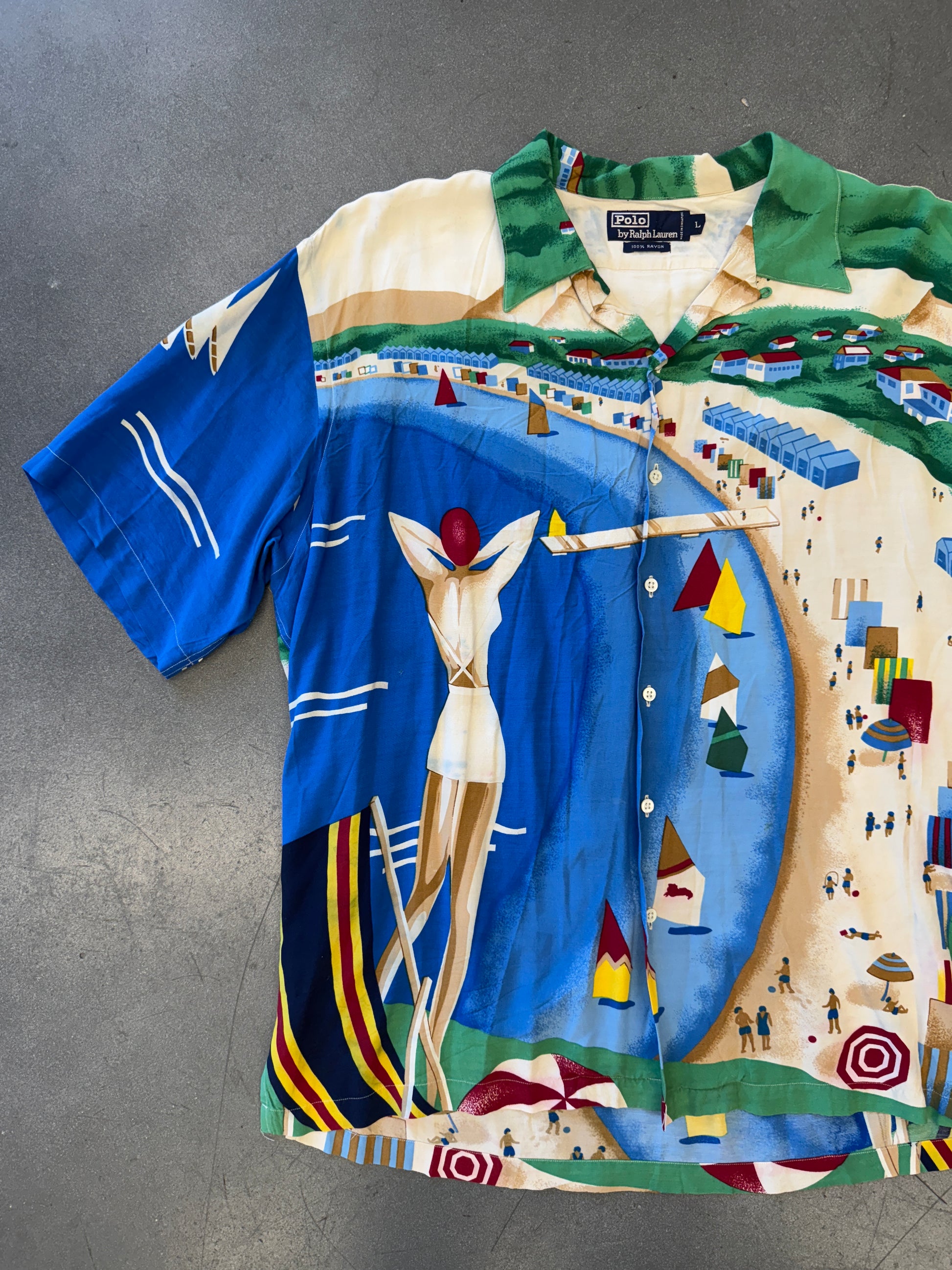 90S VINTAGE POLO RALPH LAUREN ORIGINAL RIVIERA ITALIA BUTTON UP RAYON SHIRT