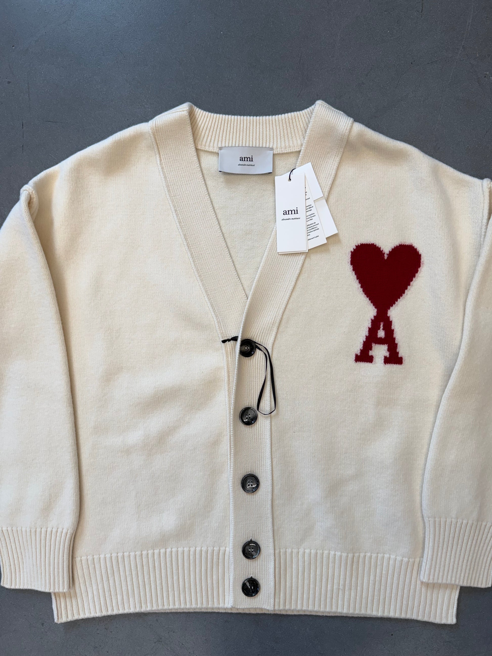 AMI PARIS MONOGRAM WOOL CARDIGAN - WHITE (M) (NWT)