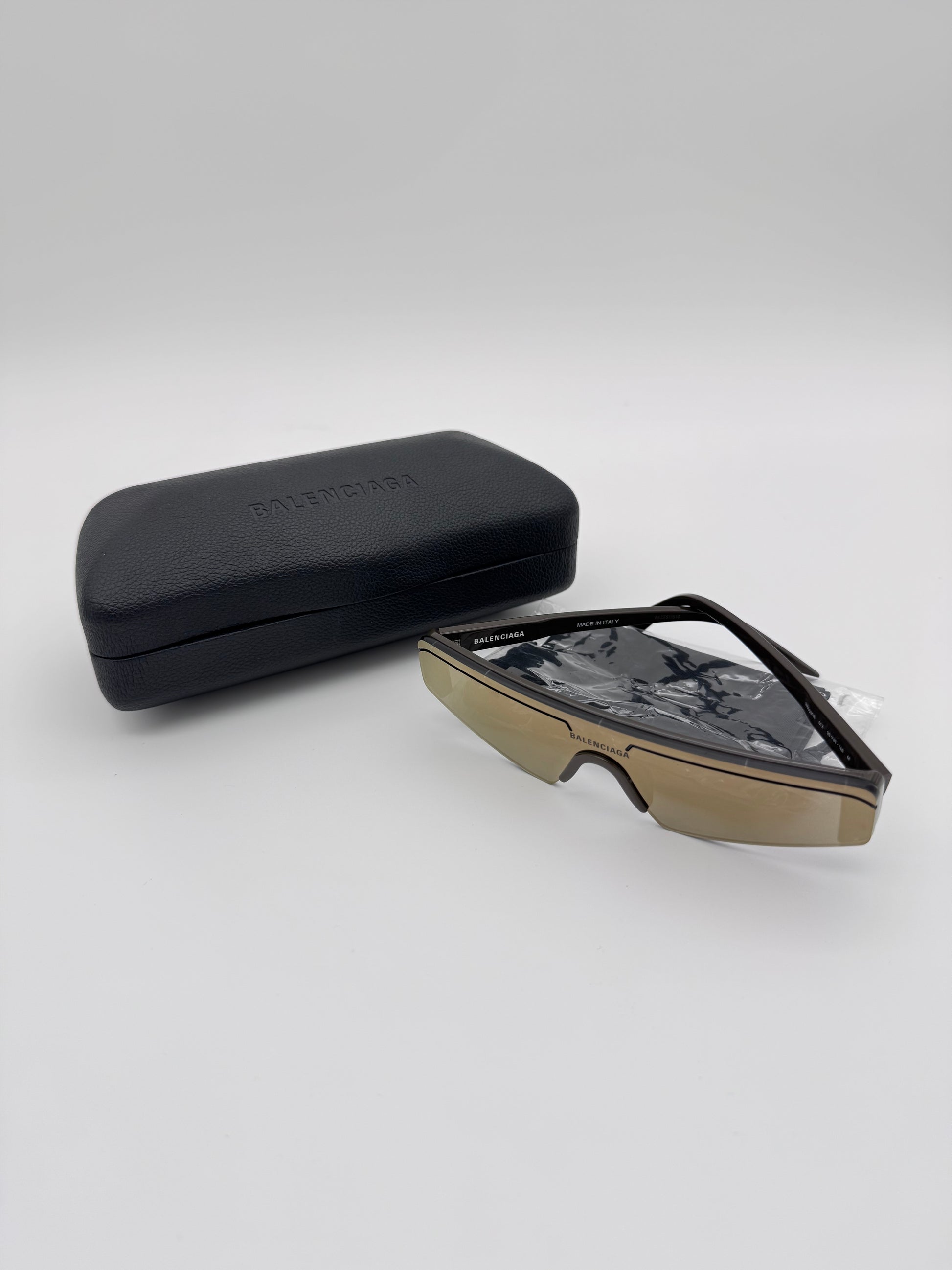 BALENCIAGA BROWN SKI RECTANGLE SUNGLASSES (PRE-OWNED WITH CASE)