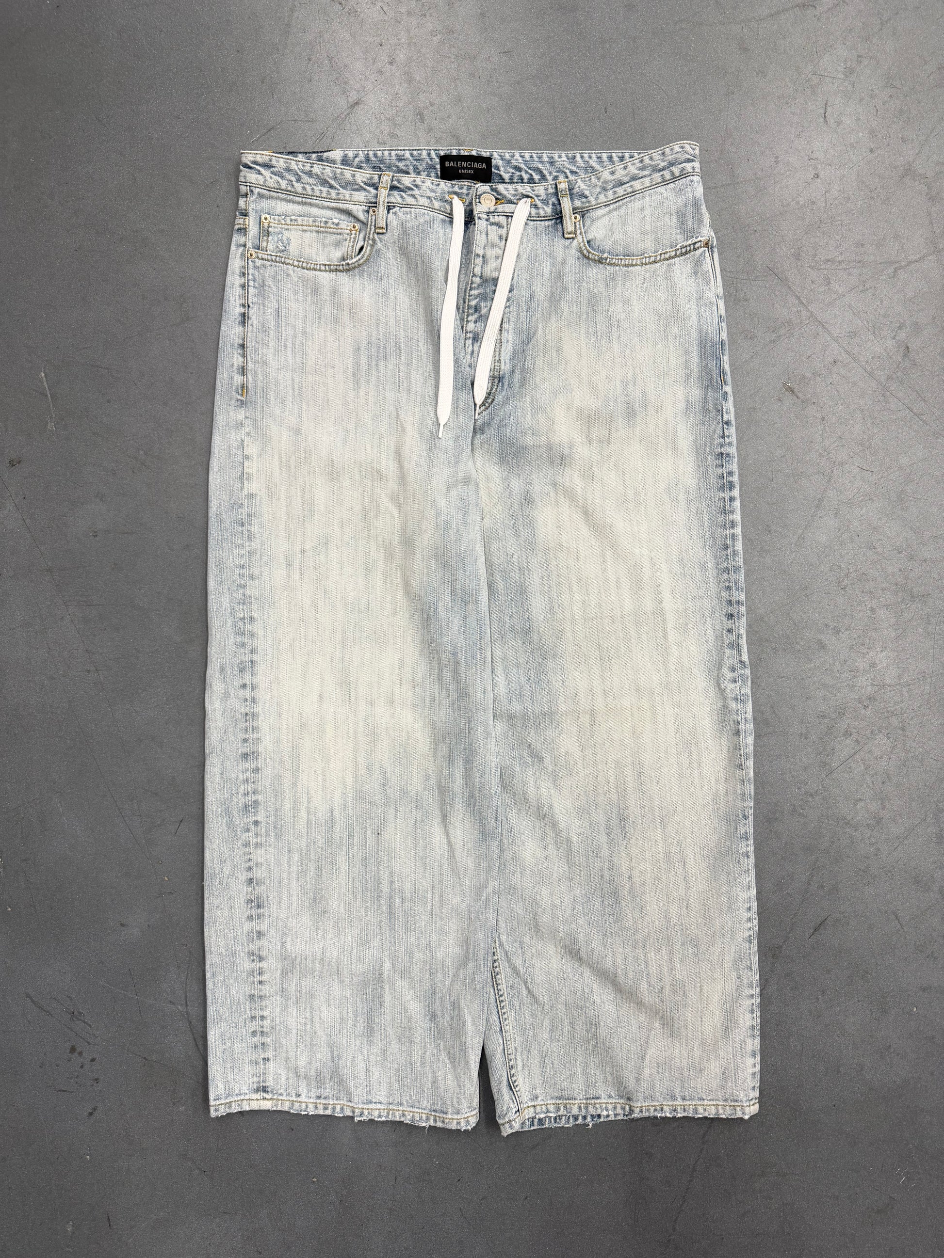 BALENCIAGA WIDE LEG BAGGY DRAWSTRING JEANS - LIGHT WASH