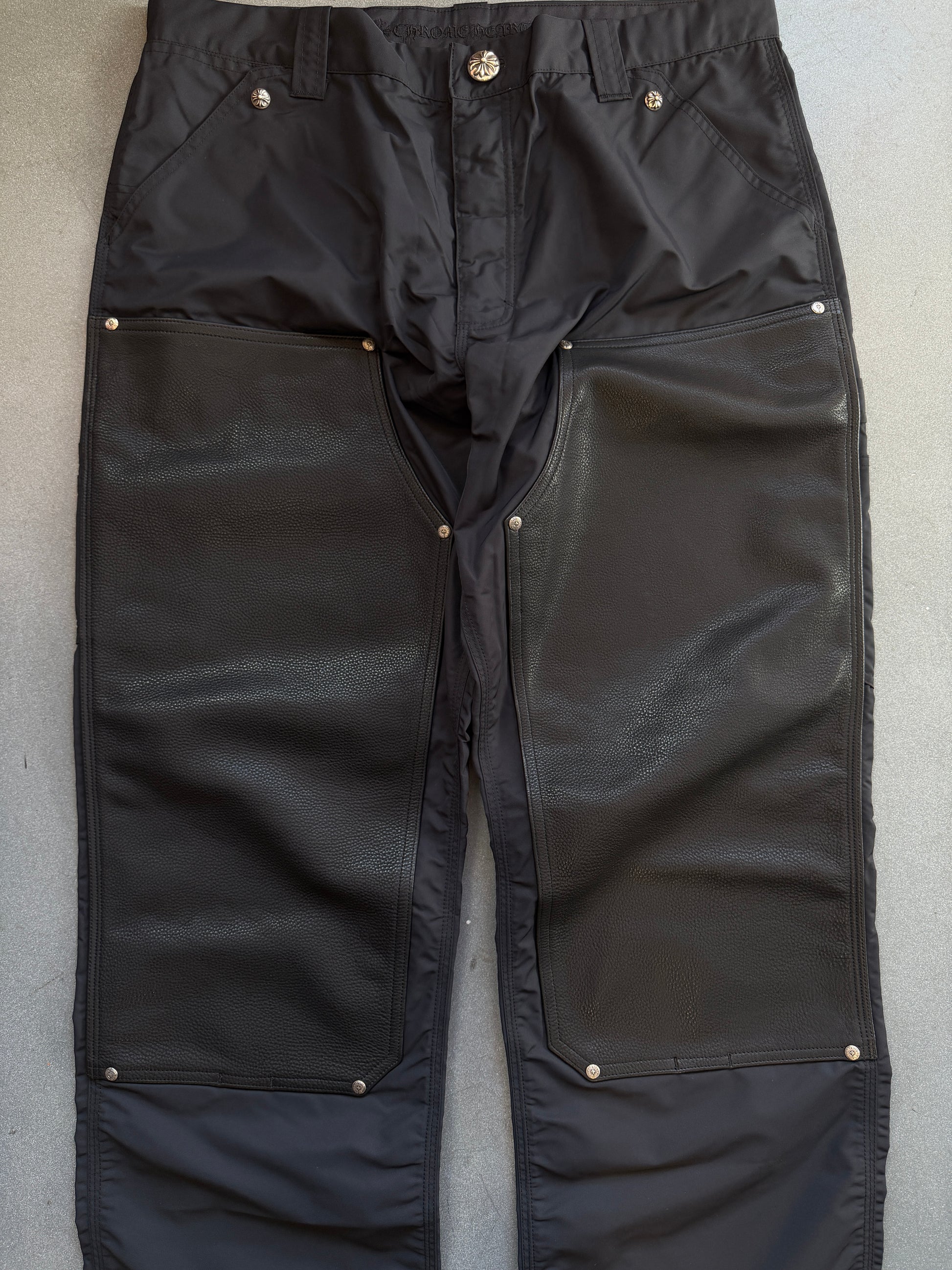 CHROME HEARTS CARPENTER DOUBLE KNEE NYLON/LEATHER PANTS (36)