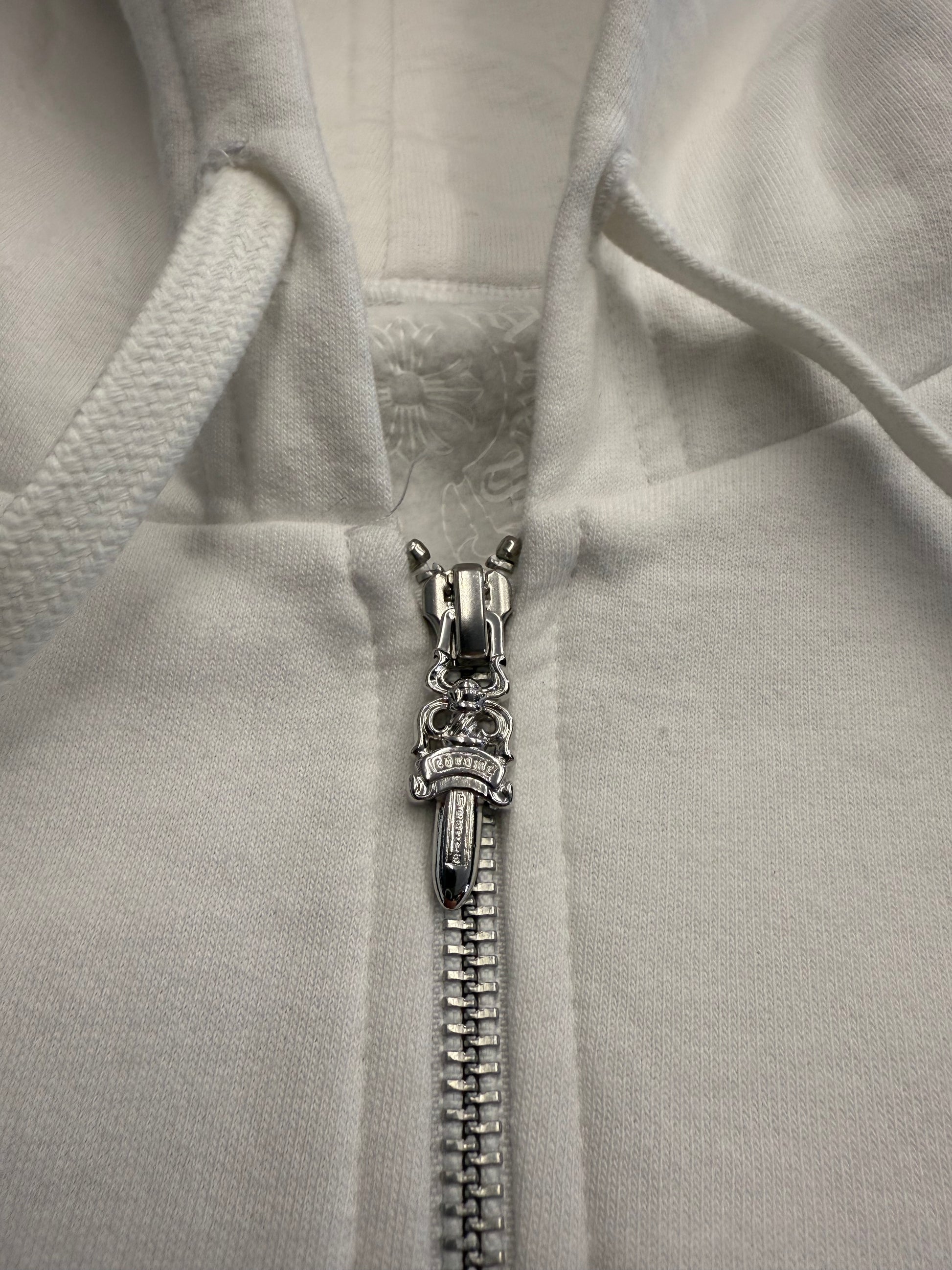 CHROME HEARTS VERTICAL LOGO ZIP UP HOODIE - WHITE