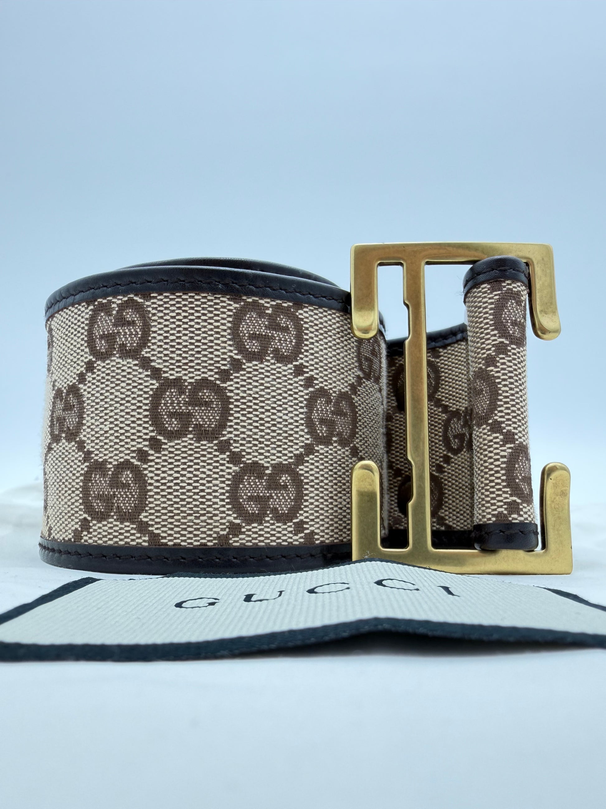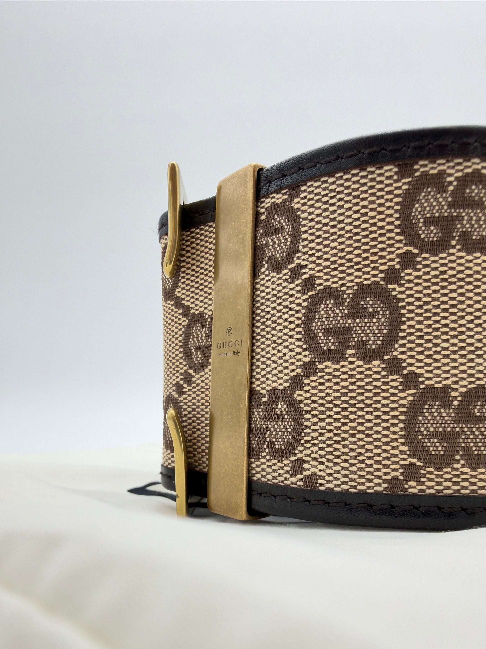 GUCCI MONOGRAM THICK WOMENS BELT - BEIGE (PRE-OWNED WITH DUSTBAG) (TANIA)