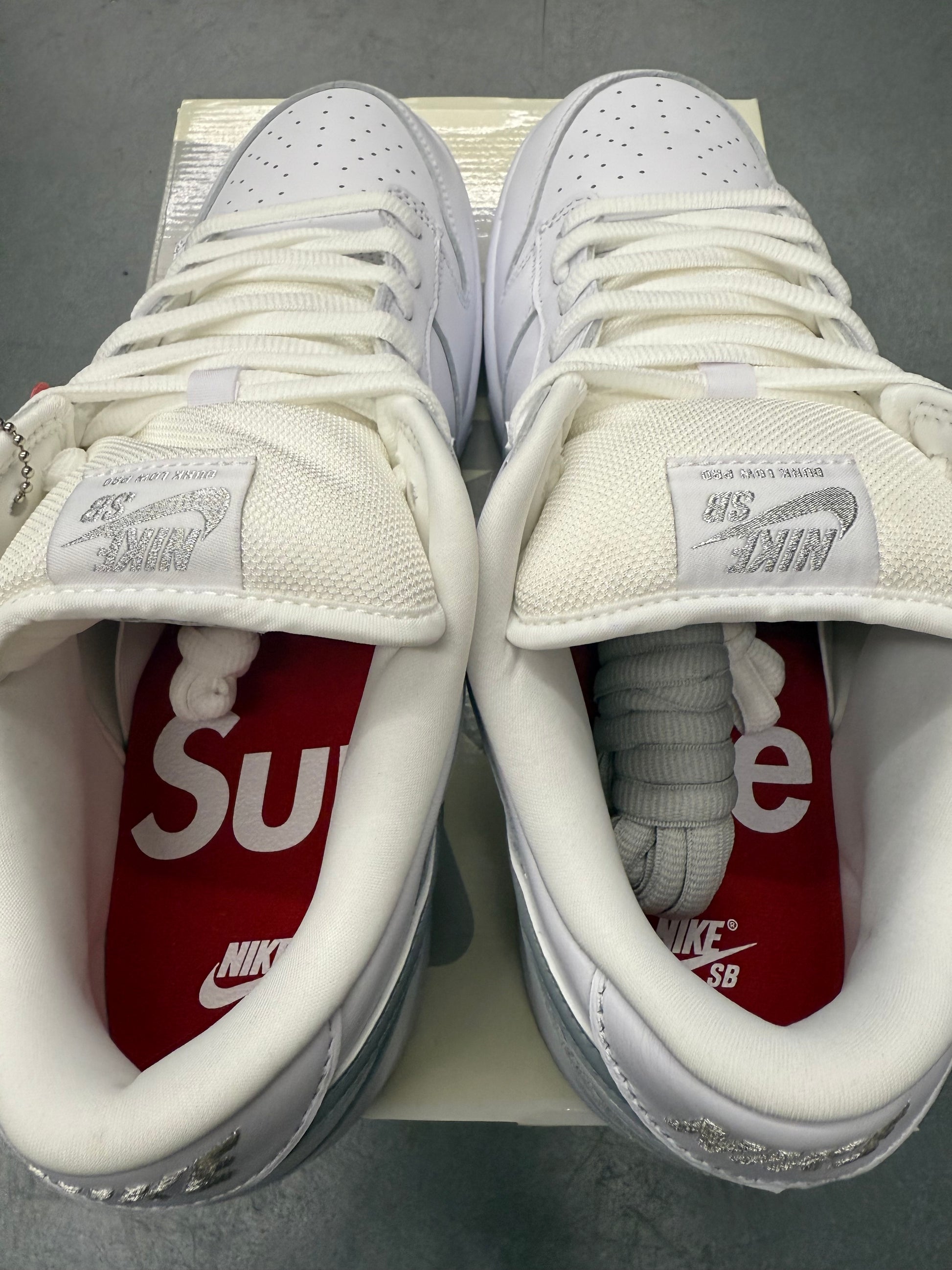 NIKE SB DUNK LOW SUPREME 94 WHITE METALLIC SILVER