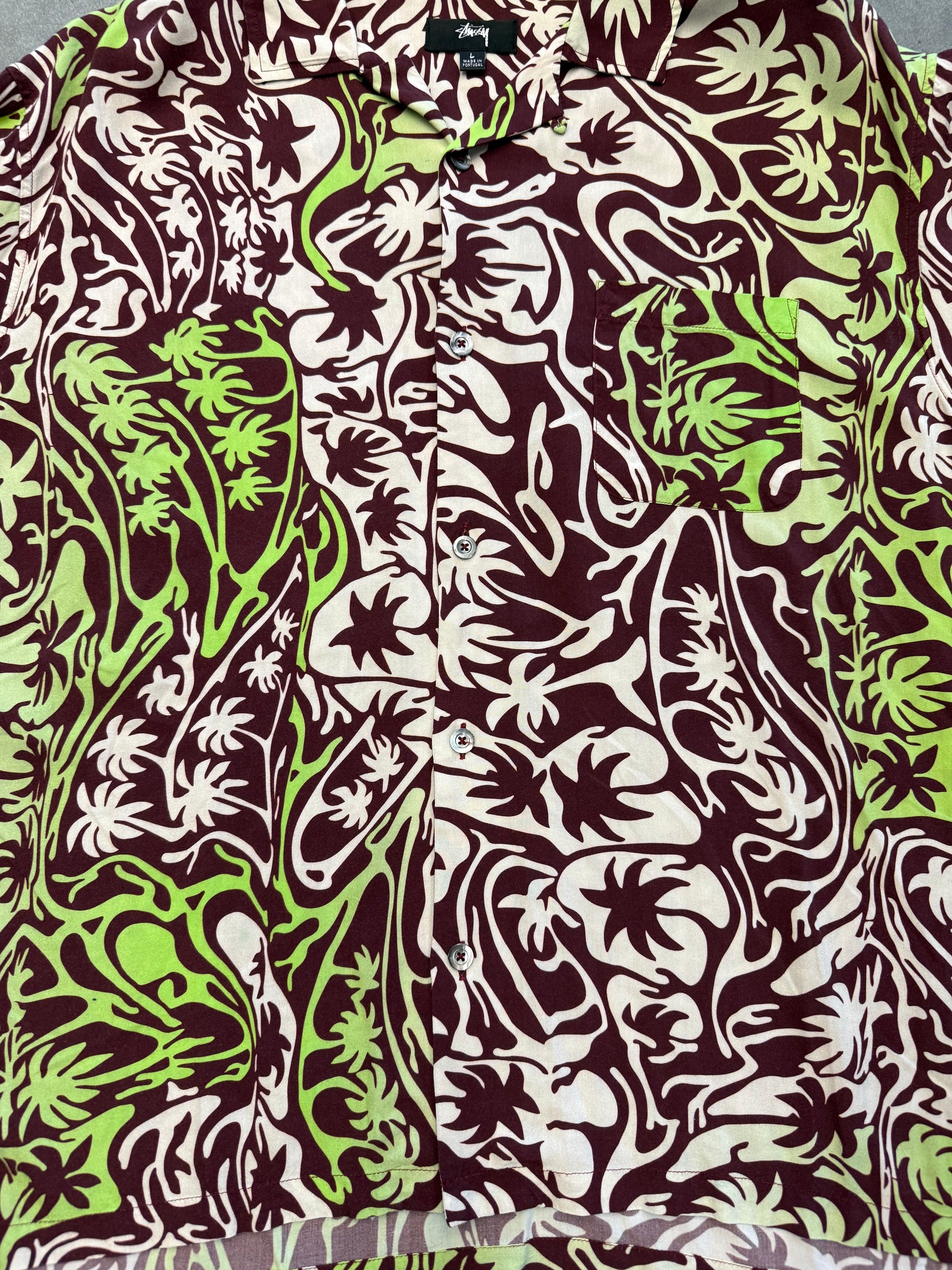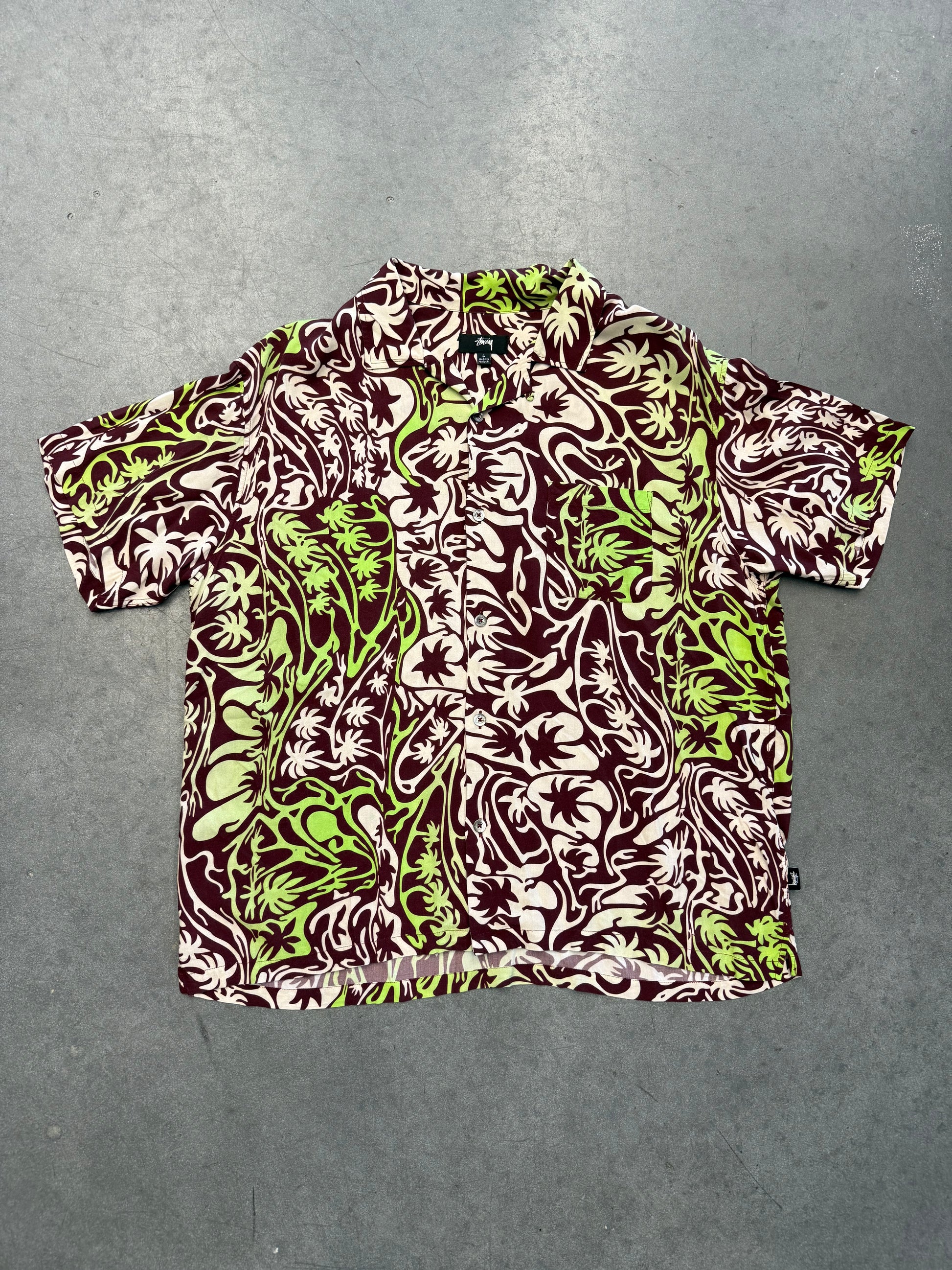 STUSSY PSYCHADELIC PALM TREE BUTTON UP SHIRT