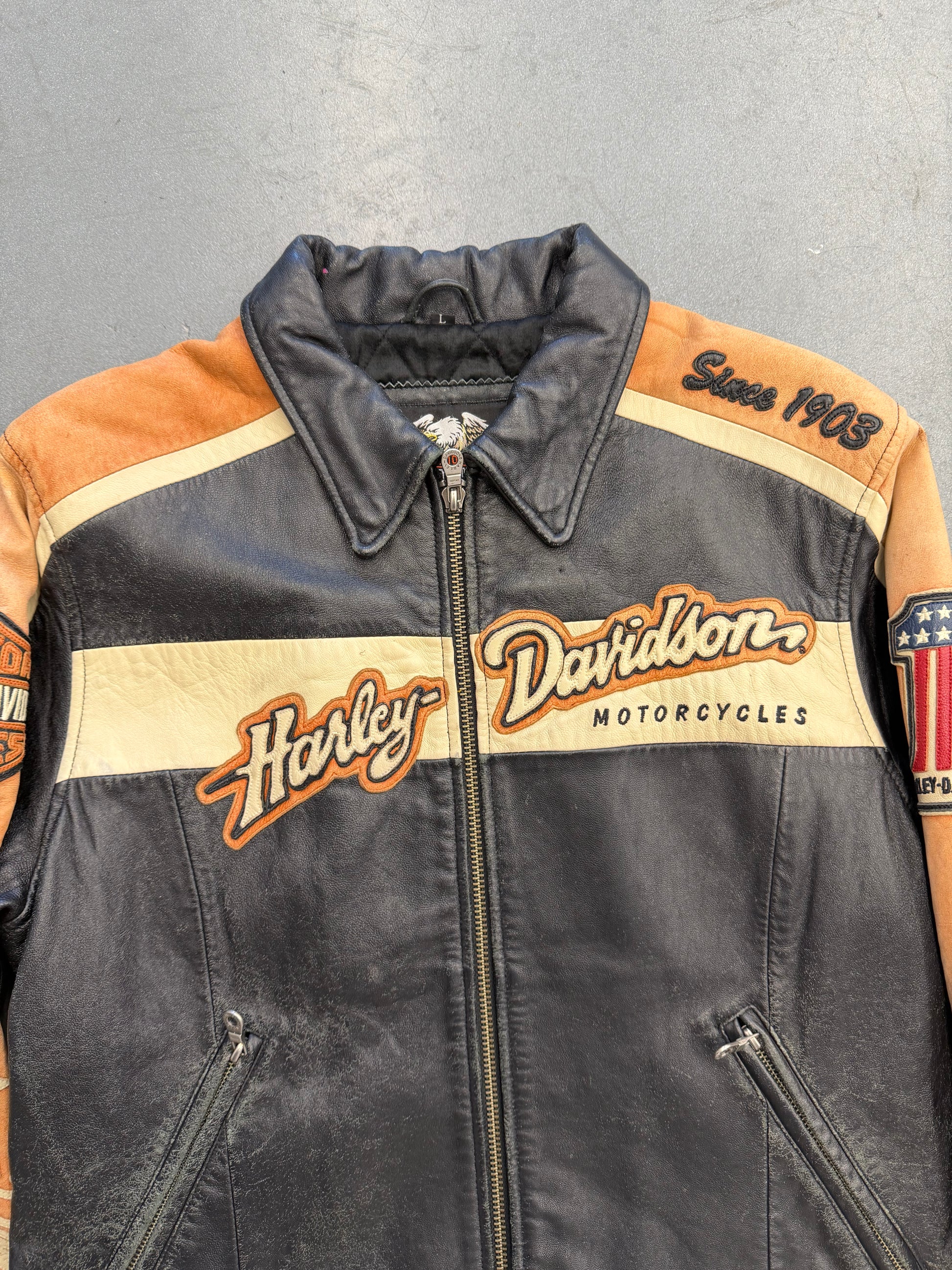 Y2K HARLEY-DAVIDSON "RIDE TO LIVE" FADED FULL-ZIP LEATHER JACKET